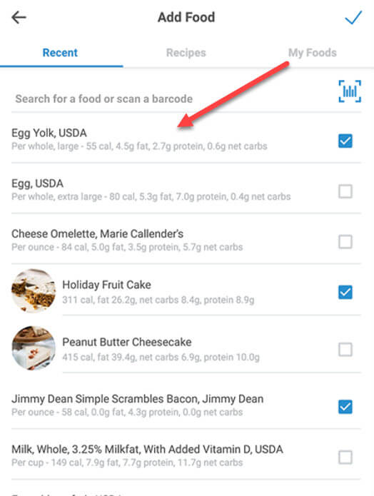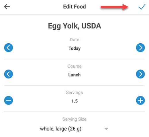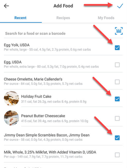2. If you'd like to change the date, course, number of servings, or serving size for any of the items being multi-added, tap the item to edit it: