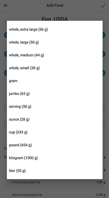 Please note: Some food items, especially brand products, may only have 1 serving size option available. Brands often provide only a single option when submitting data to the USDA and other food databases.