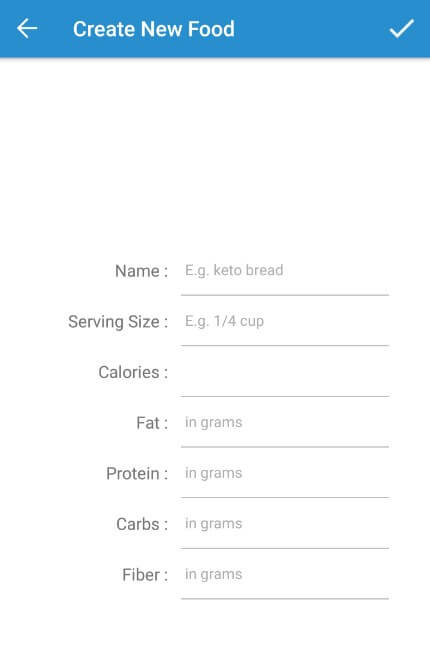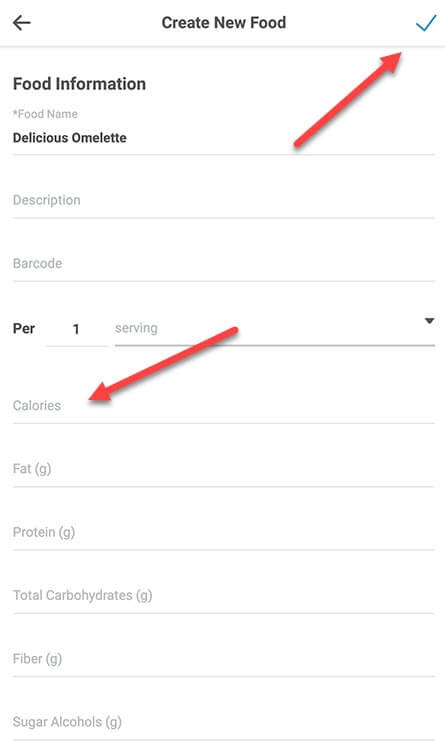- Fill in all the fields and tap the checkmark to finalize your new custom food: