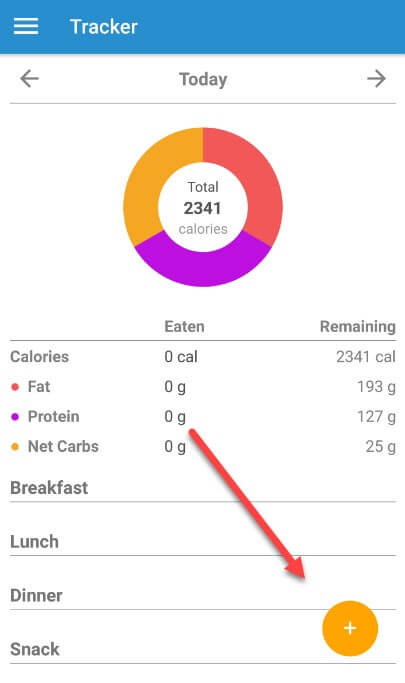 - Tap the yellow + button on the home screen or any + button on tracker screen: