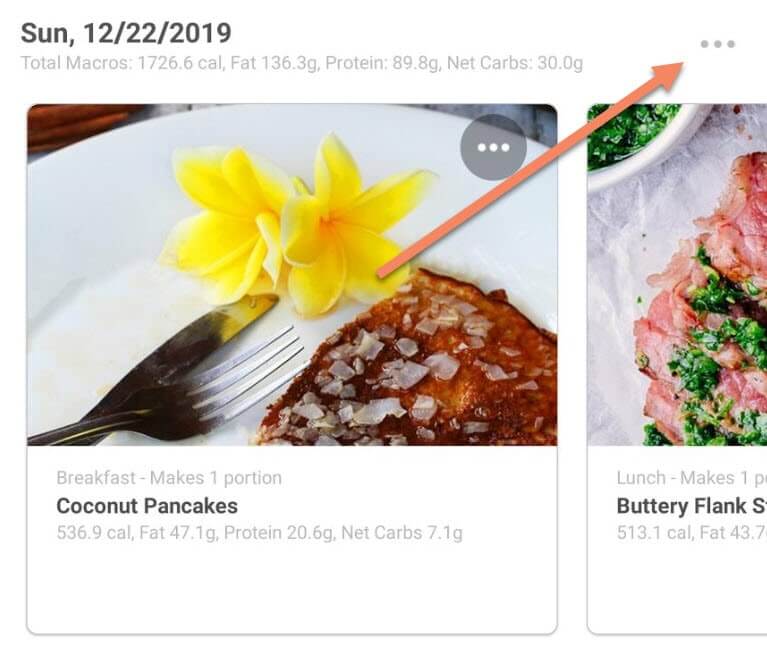 - Tap the 3 dots icon in the top right corner of the recipe: